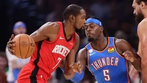 亚历山大半场前单挑奥科吉:火箭防守强者如云,但真能跟上亚历山大节奏的,可能只有阿门和伊森。