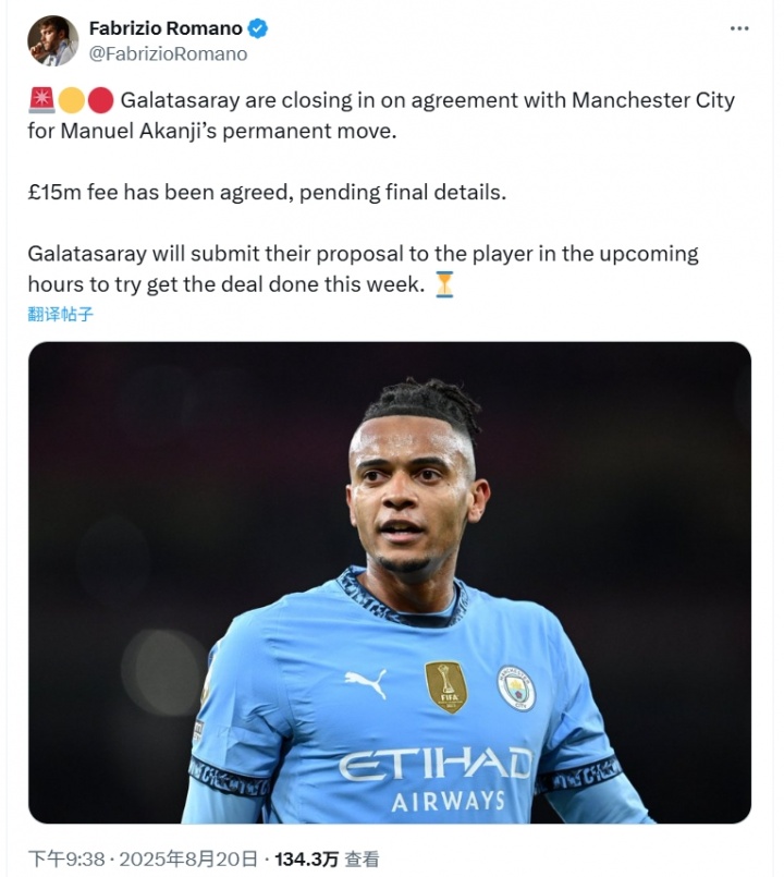 必发官网-惨遭本人打脸!阿坎吉在罗马诺的帖子下回复:我咋啥都不知道 2025-08-22 18:00:10 德甲 53℃ 0 08月20日讯 罗马诺此前报道称,加拉塔萨雷即将与曼城就阿坎吉达成协议。阿坎吉出现在罗马诺的ins评论区,他评论道:我什么都不知道。随后,罗马诺在ins删除了这条帖子,目前他在X上的帖子还未删除。 上一篇:必发官网-法媒:摩纳哥准备接受吉达联合报价,但扎卡里亚交易比看上去复杂 下一篇:必发下载-今夏离开埃弗顿,官方:沙特联新未来城体育签下自由球员杜库雷 相关推荐 斯通盛赞申京表现统治级:体型出色比赛投入,全队倍感振奋 玉昆踏上中超目标站稳脚跟 安德森:先要完成保级 小贾巴里本赛季15+的比赛火箭15胜2负 抢下10+板的比赛8胜1负 北京国安官方:球队门将韩佳奇重返训练场