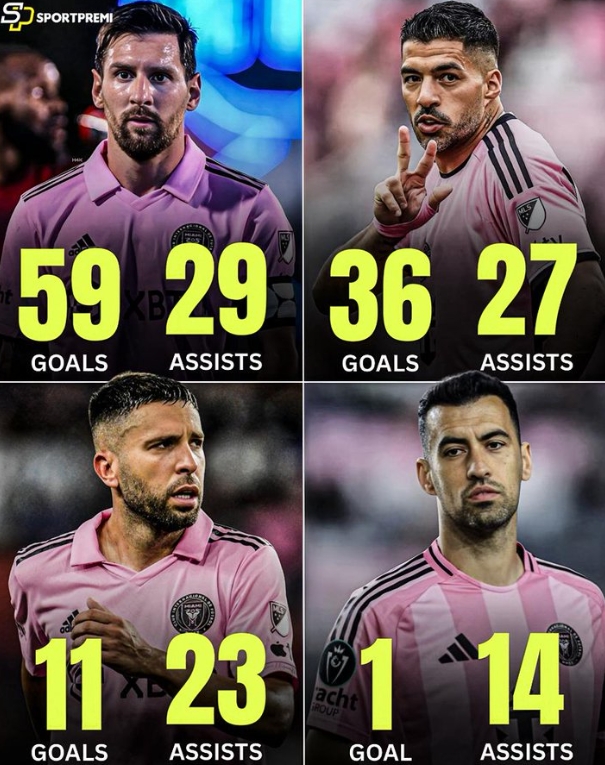 兄弟足球!前巴萨U40四人组在迈阿密数据:梅西59+29,苏牙36+27